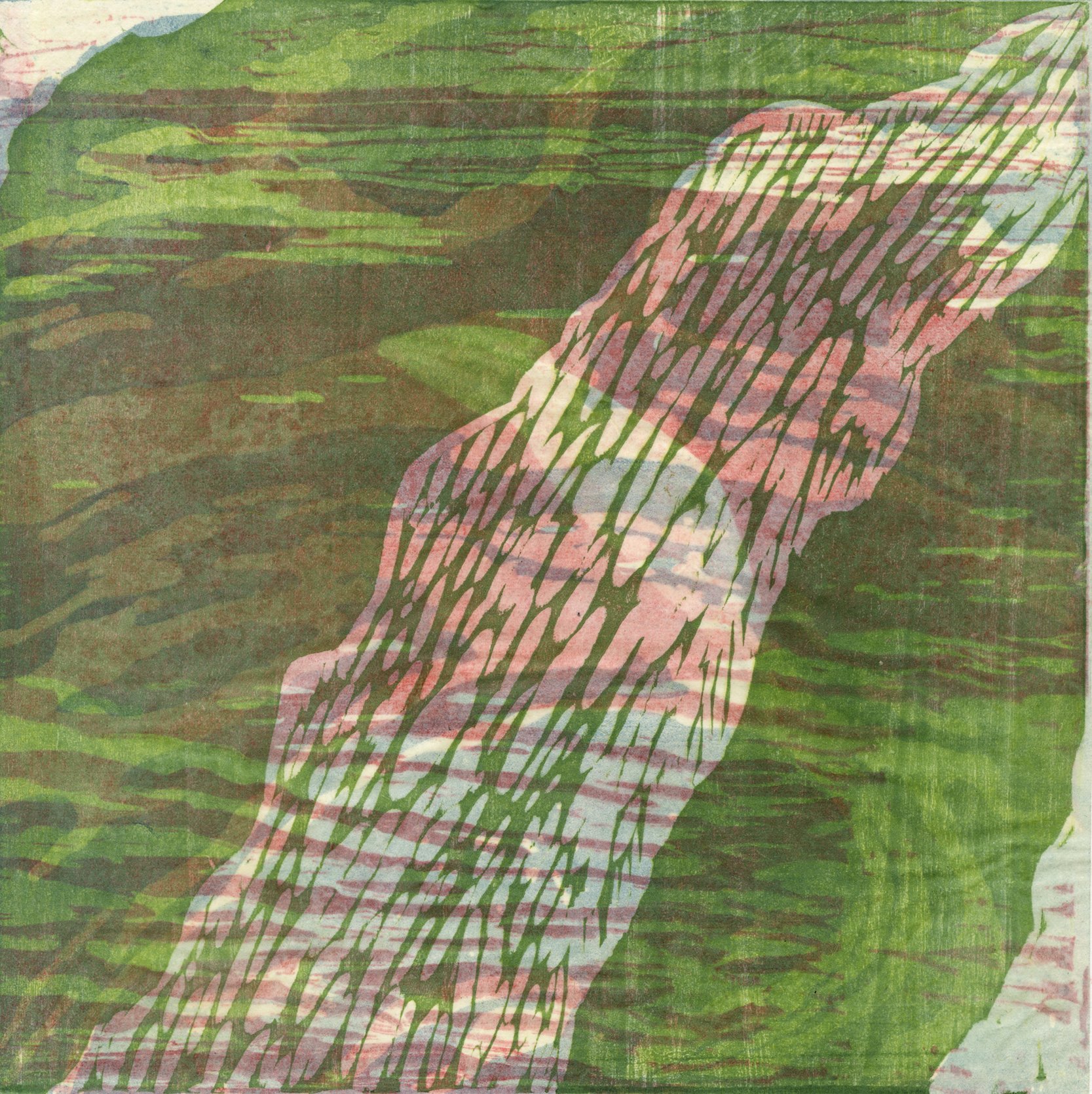 Spring Breakup 2 is a combination woodcut and monotype. It was completed in 2024. It is 12” x 16”.